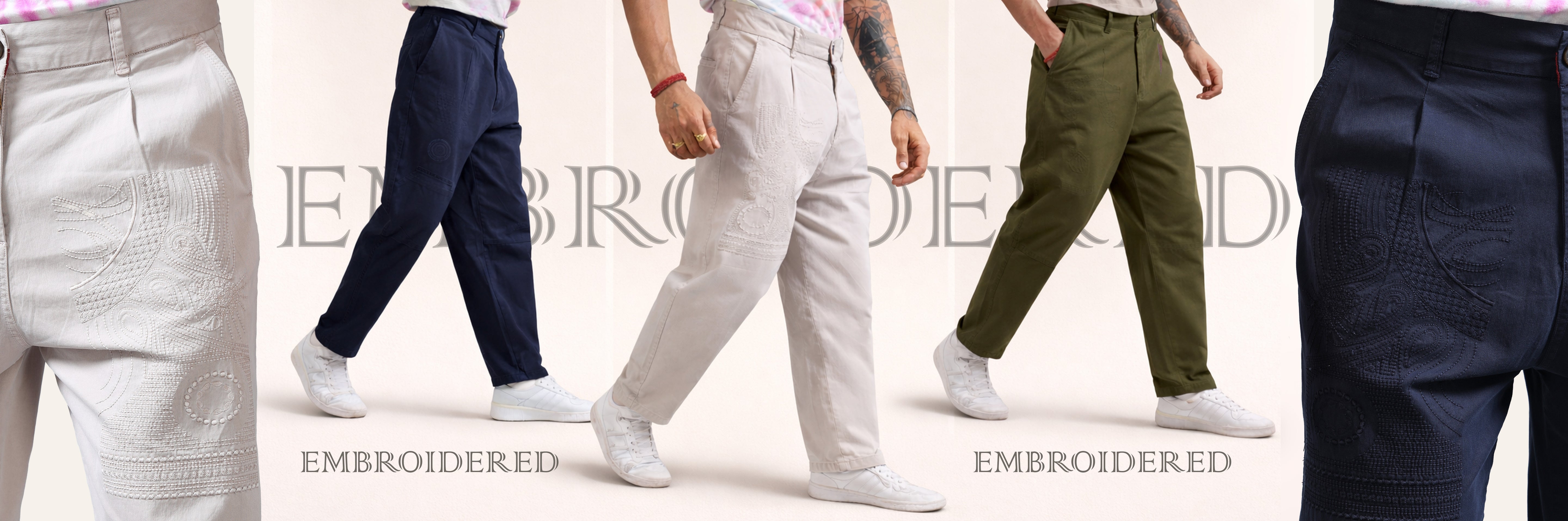 Battalion Embroidered Trouser In Cream