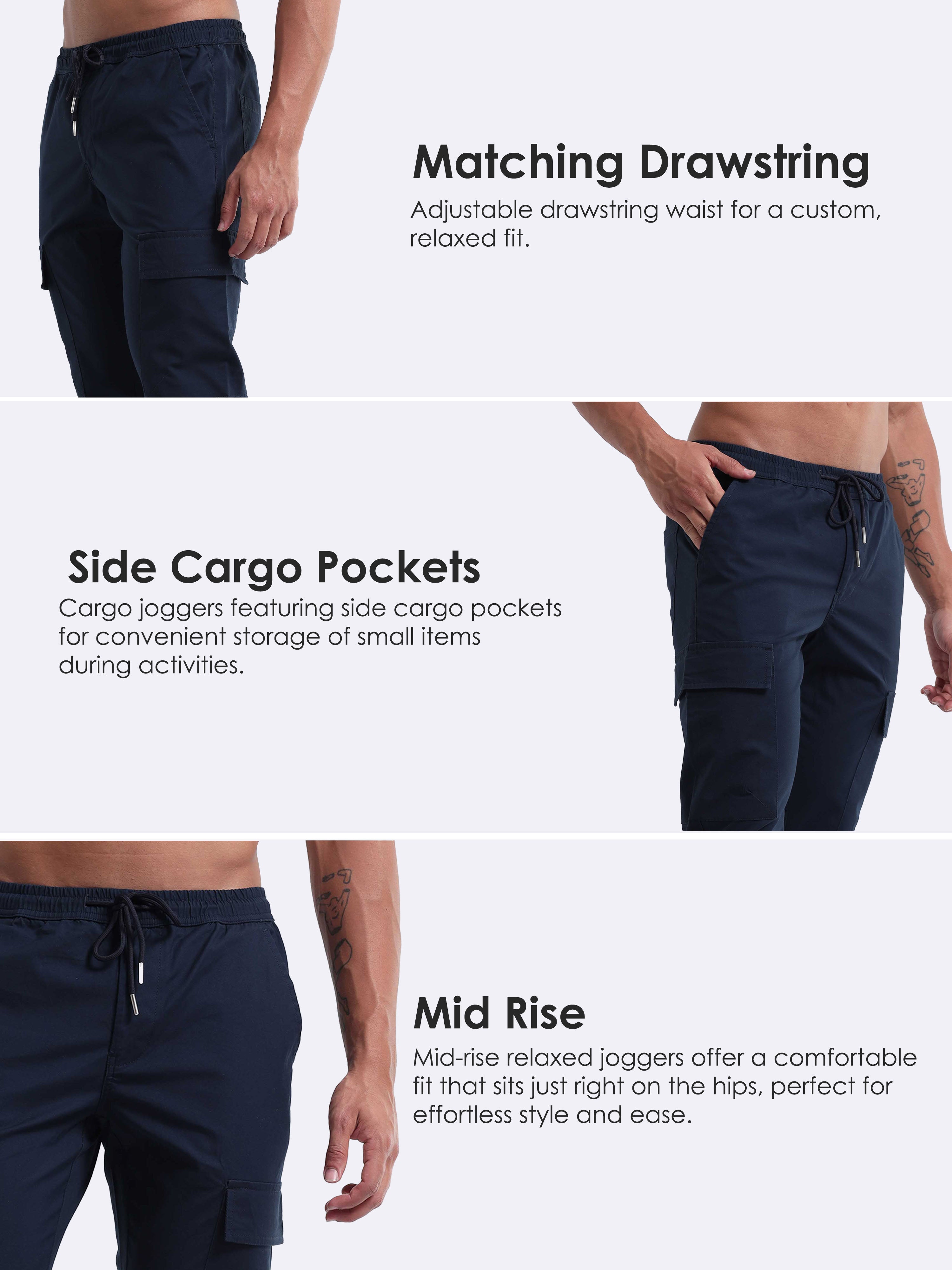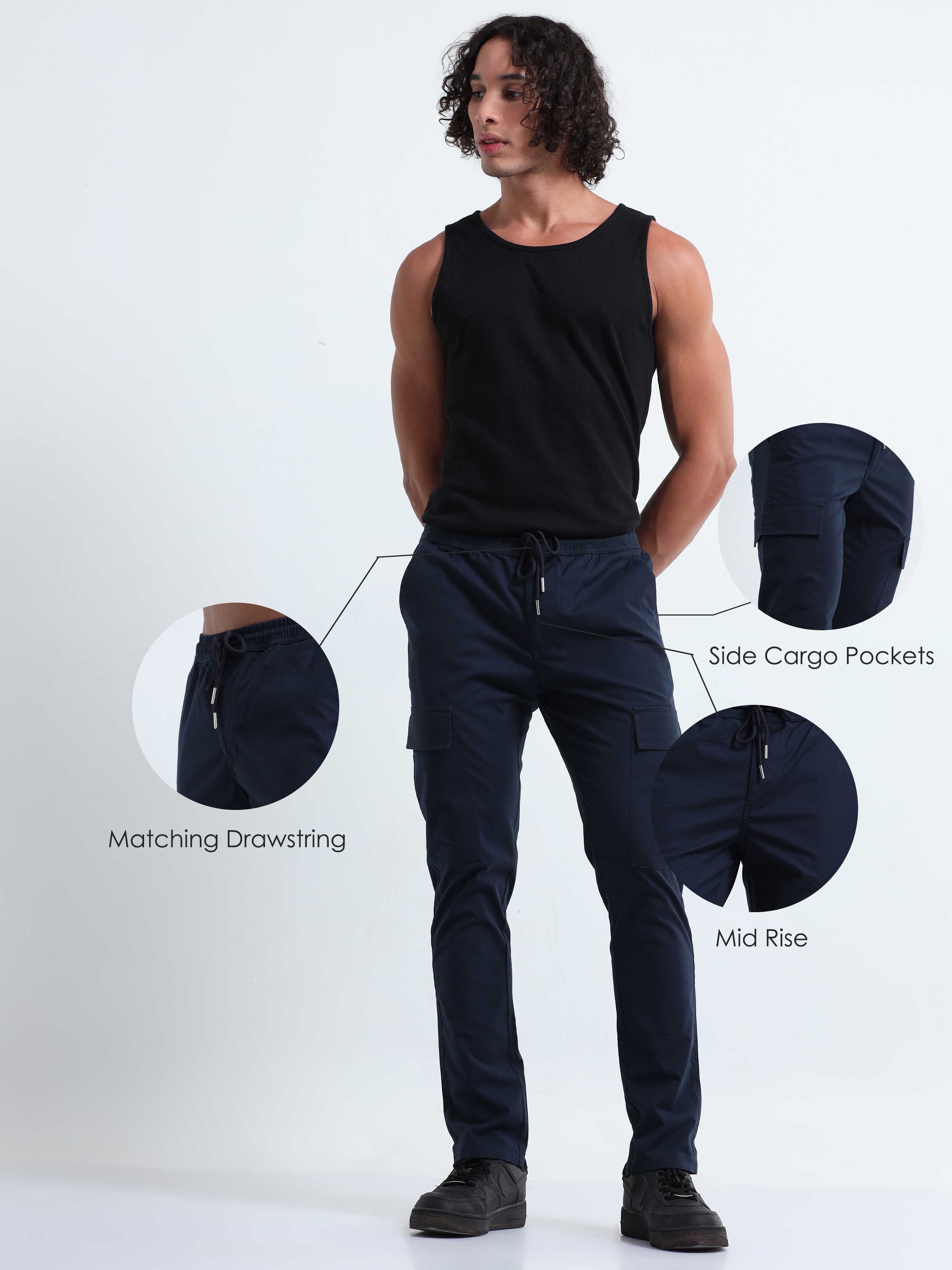 Tailored Fit Cargo Joggers In A Comfortable Cotton Stretch Fabric With An Elasticated Waistband Featuring Front Pockets, Side Cargo Pockets, Rear Welt Pockets With Flap, Elasticated Bottom Opening, And Zip Fly.
