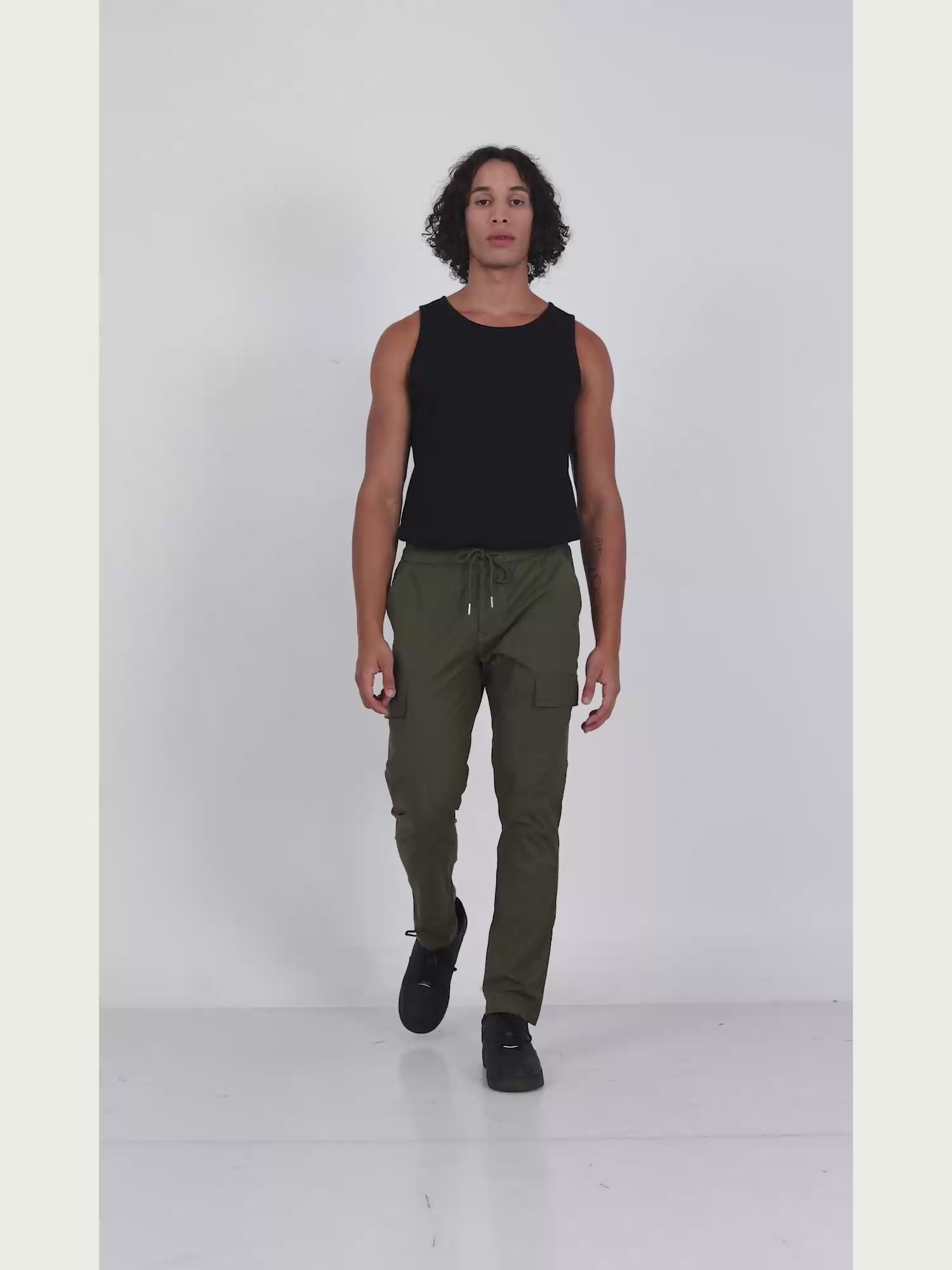 Tailored Fit Cargo Joggers In A Comfortable Cotton Stretch Fabric With An Elasticated Waistband Featuring Front Pockets, Side Cargo Pockets, Rear Welt Pockets With Flap, And Zip Fly.
