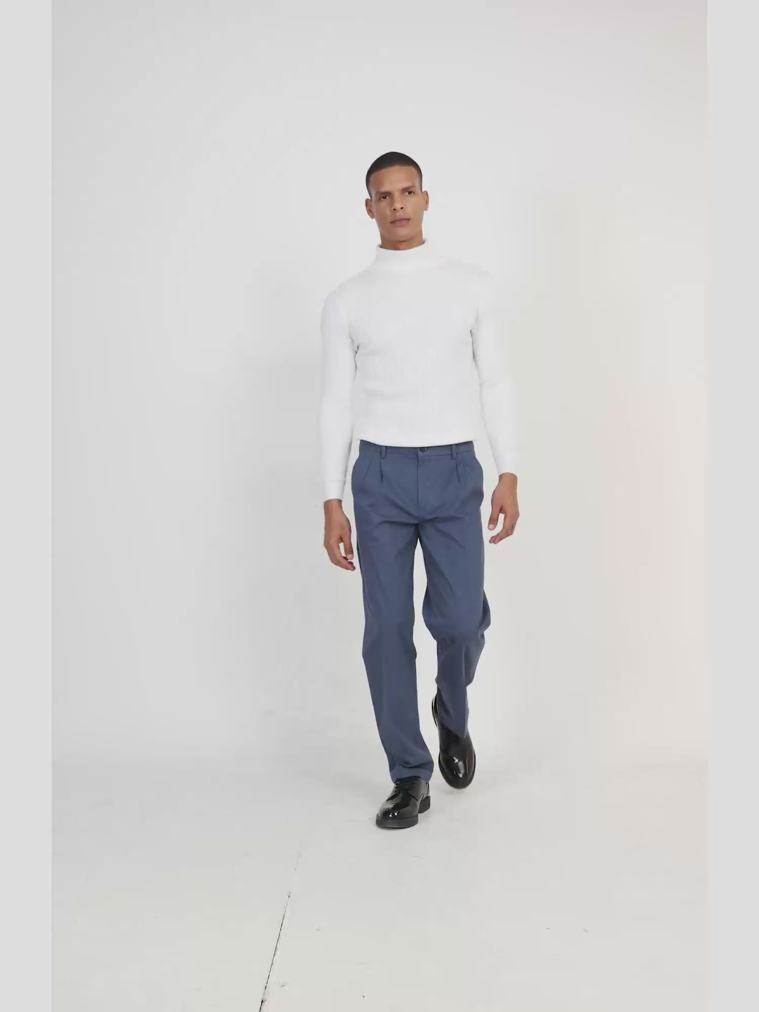 Relaxed fit double-pleated trousers in a comfortable fine quality stretch fabric front pockets, rear welt pockets, and zip fly.