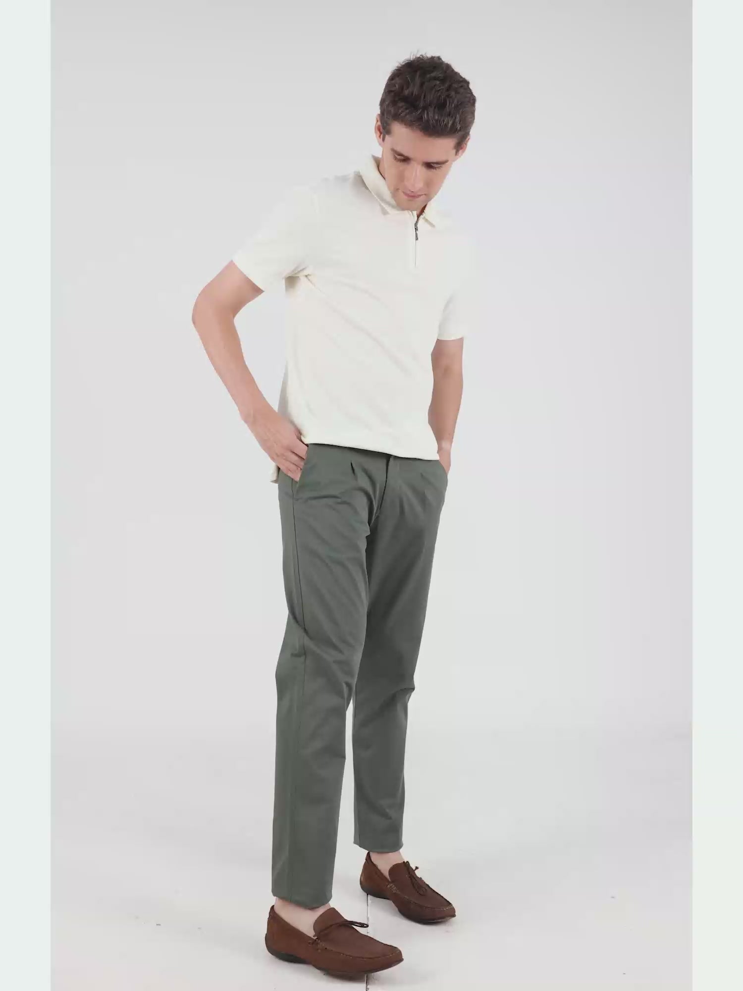 Essential Pleated Olive Fine Twill Pant Sale priceRs. 2,199