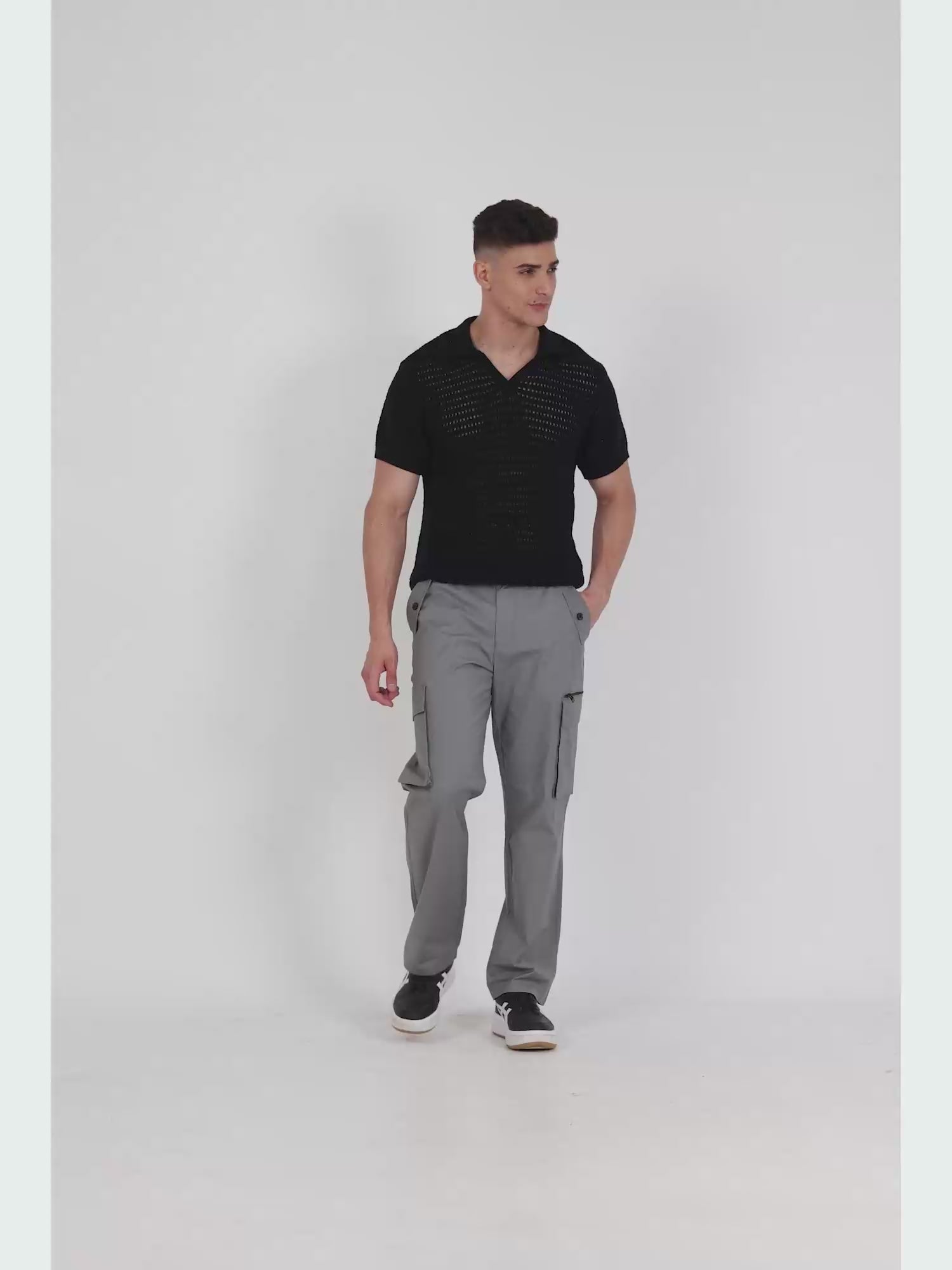 Relaxed Joggers In a Comfortable Stretch Cotton Fabric with an Elasticated Waistband Featuring Front Pockets, Rear Welt Pockets, Side Cargo Pockets and a Zipper Pockets.