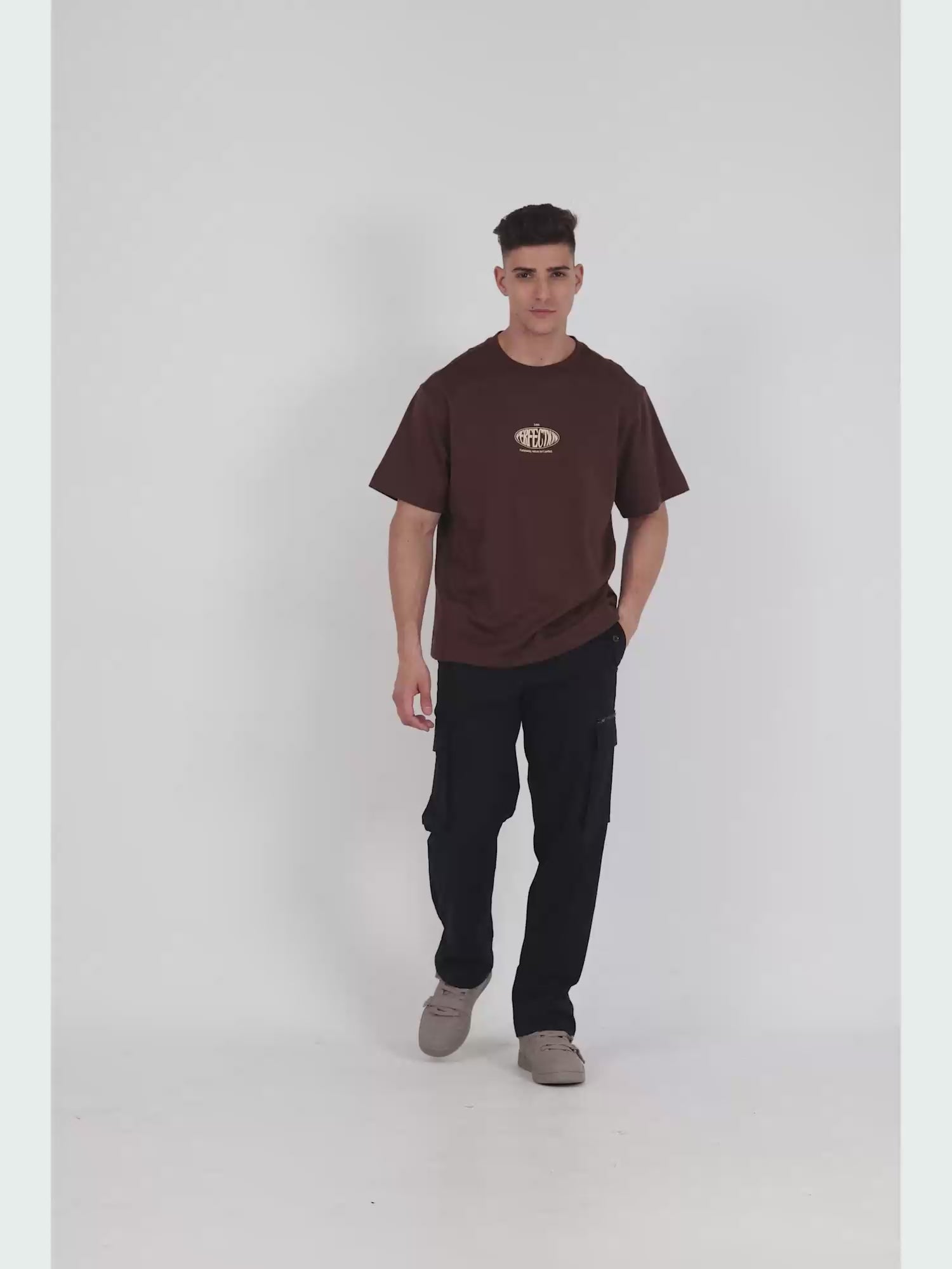 Relaxed Joggers In a Comfortable Stretch Cotton Fabric with an Elasticated Waistband Featuring Front Pockets, Rear Welt Pockets, Side Cargo Pockets and a Zipper Pockets.