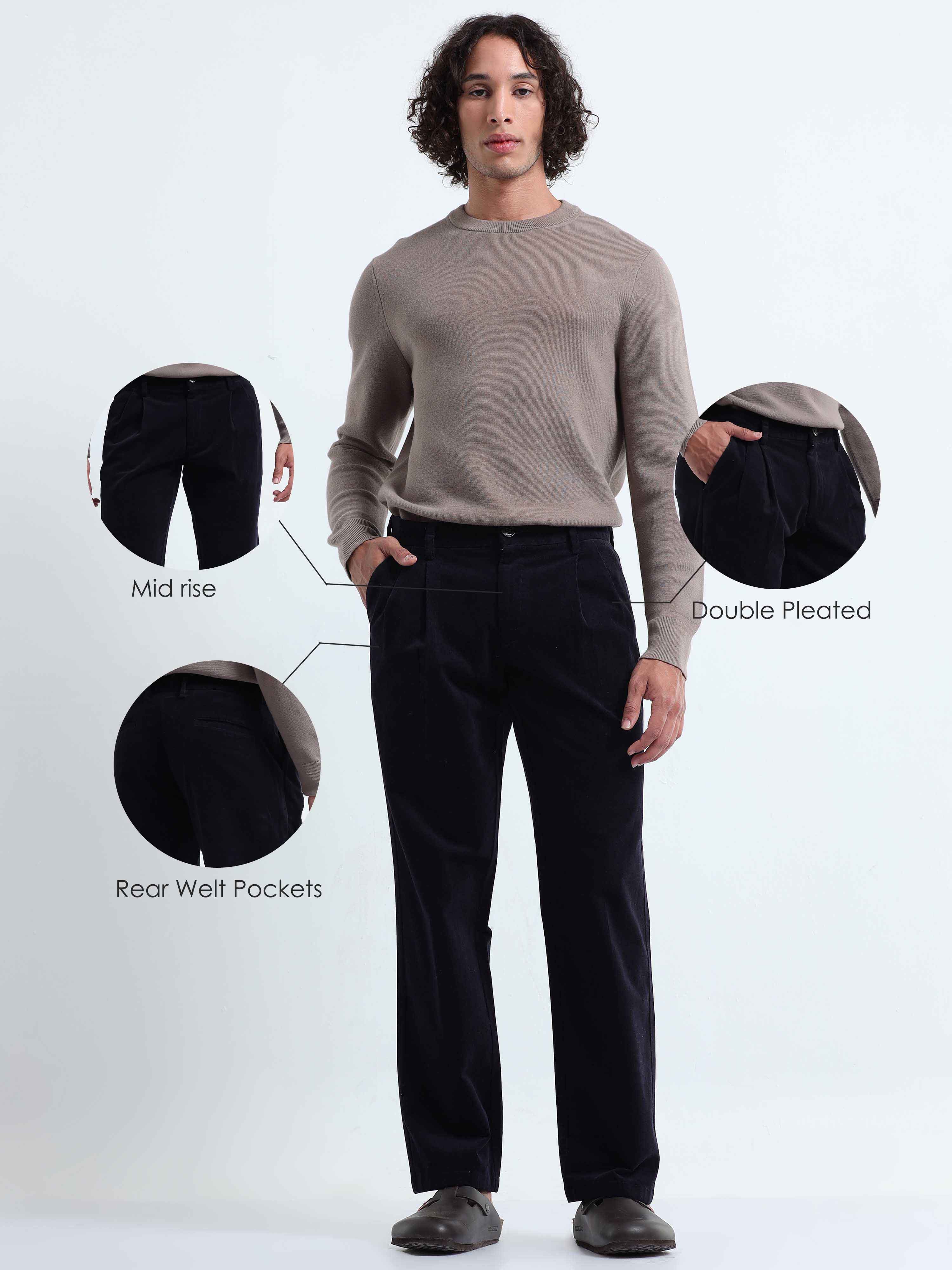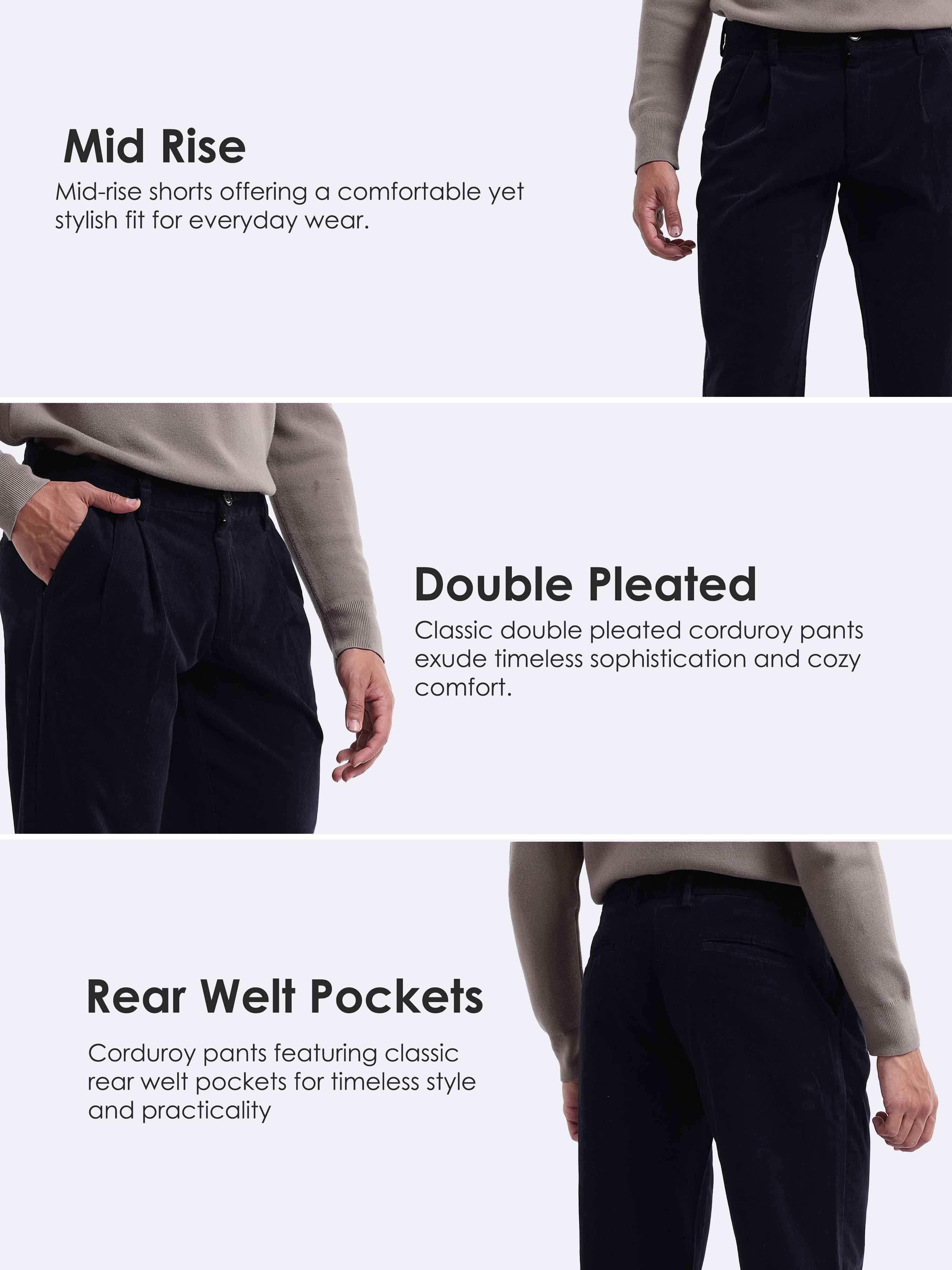 Relaxed Fit Double Pleated Trousers With a Classic Waistband in a Soft Corduroy Elastane Fabric Featuring Front Pockets, Rear Welt Pockets and Zip Fly.