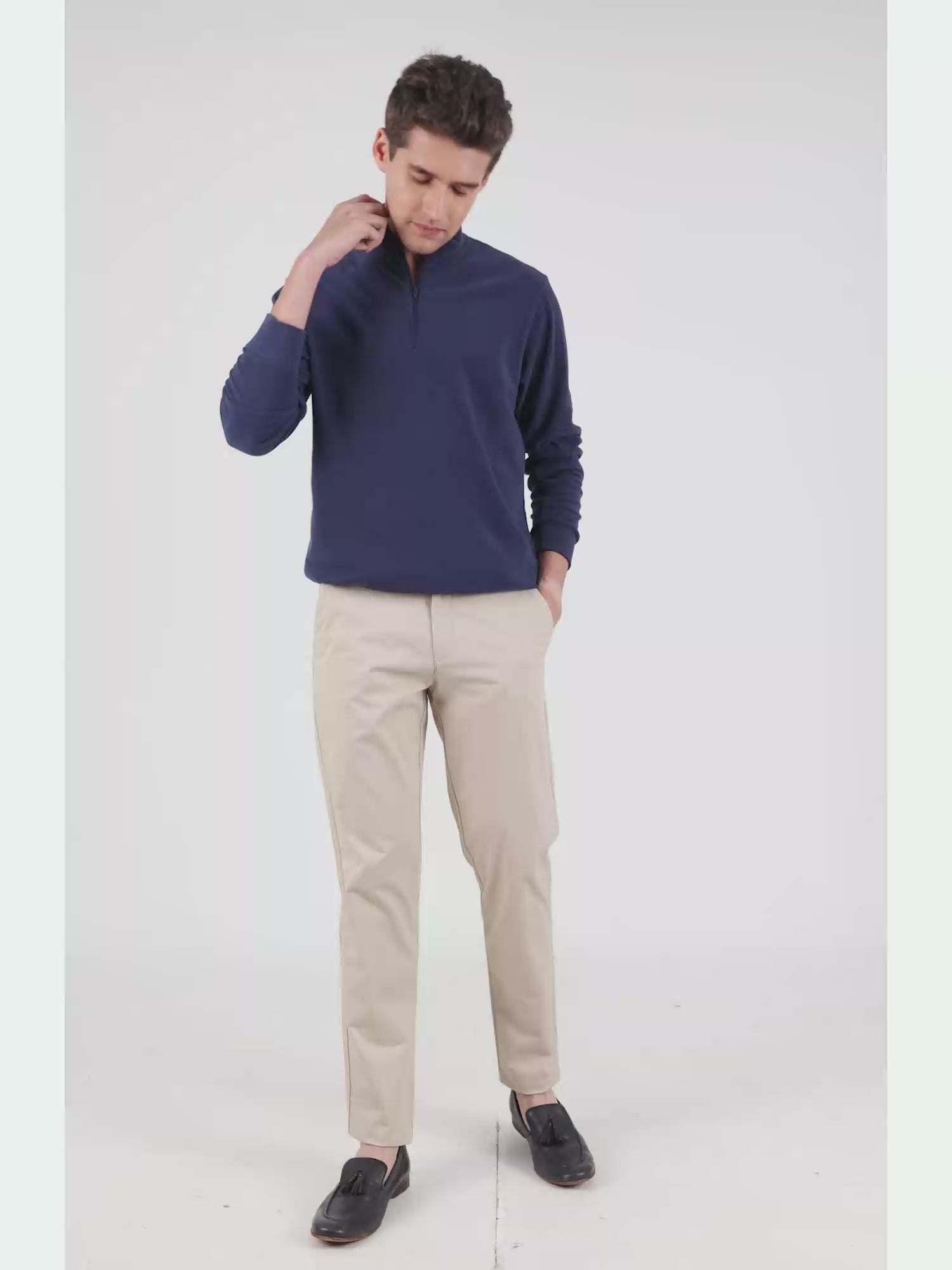 Tailored fit soft feel chinos in a comfortable cotton stretch fabric with a classic waistband featuring front pockets , rear welt pockets, and French zip fly for better comfort.
