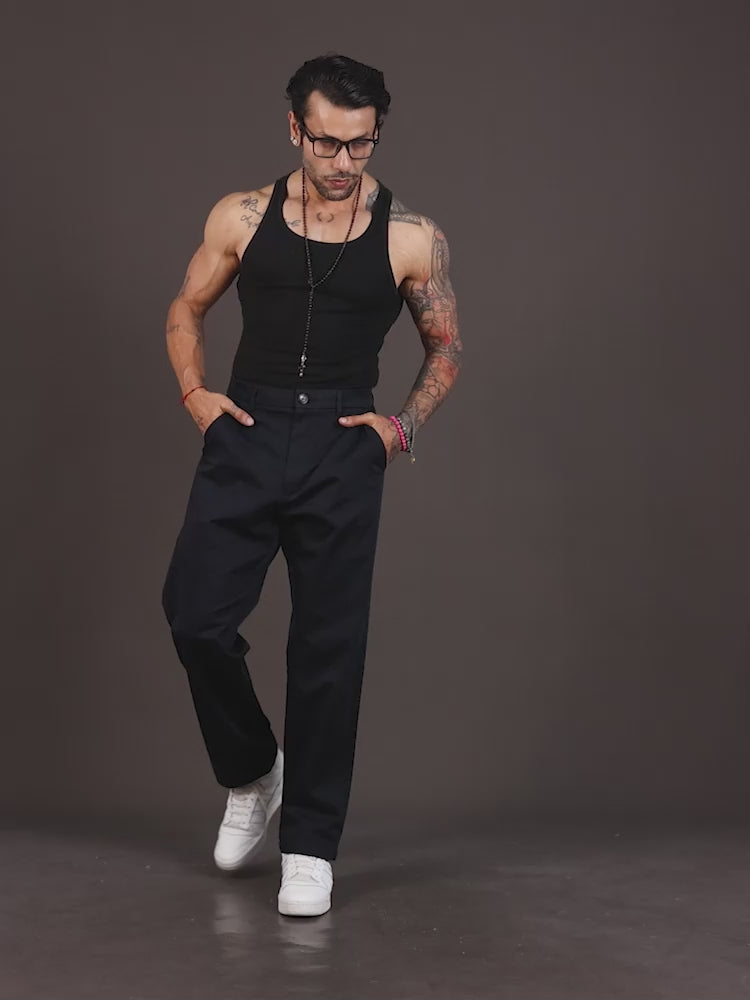 Experience effortless style with these cotton relaxed trousers, designed for all-day comfort. Featuring a straight-leg fit, classic button closure, and soft breathable fabric, they are perfect for casual outings or smart-casual looks. Versatile and timeless, these trousers are a must-have in your wardrobe.