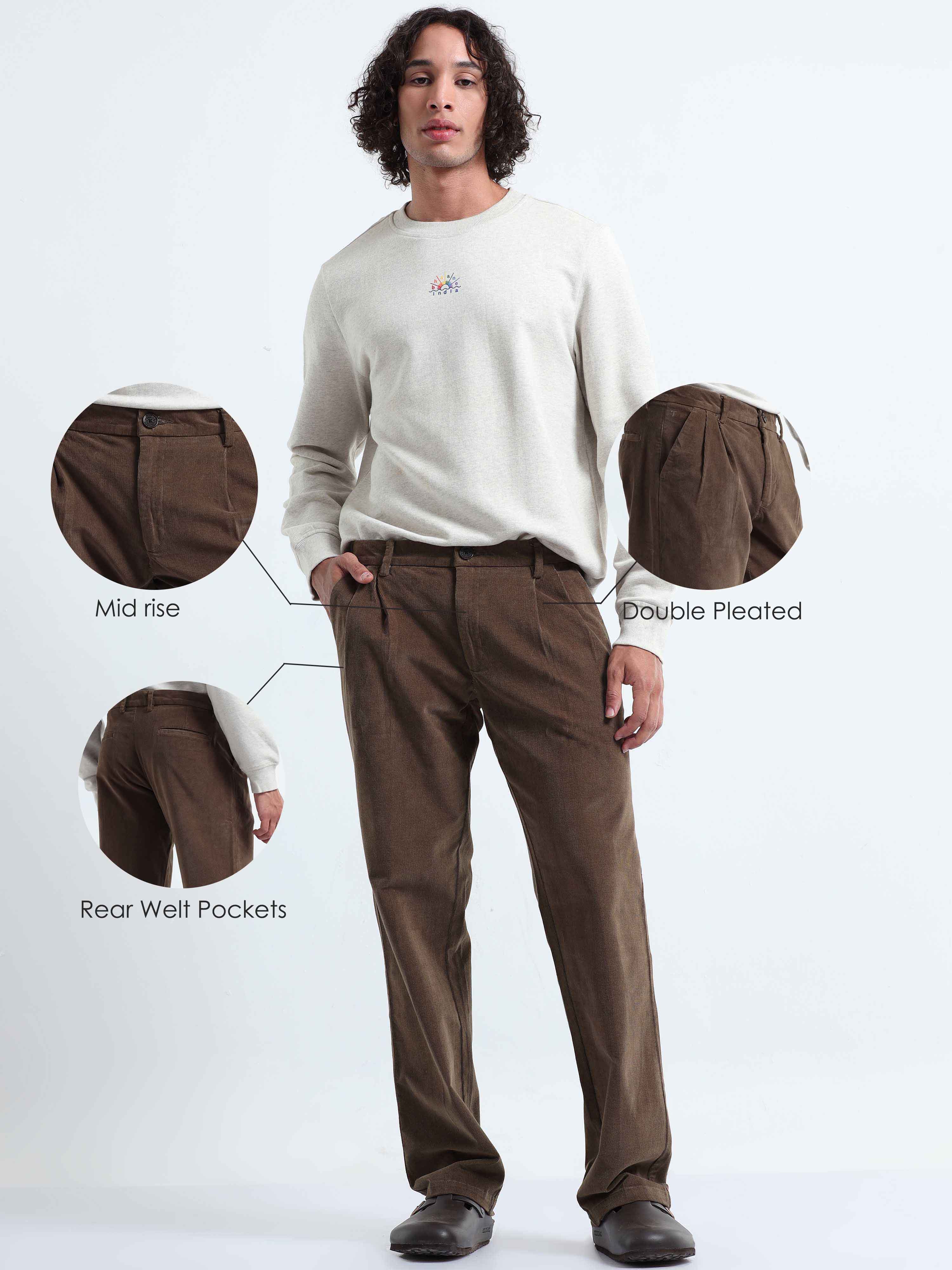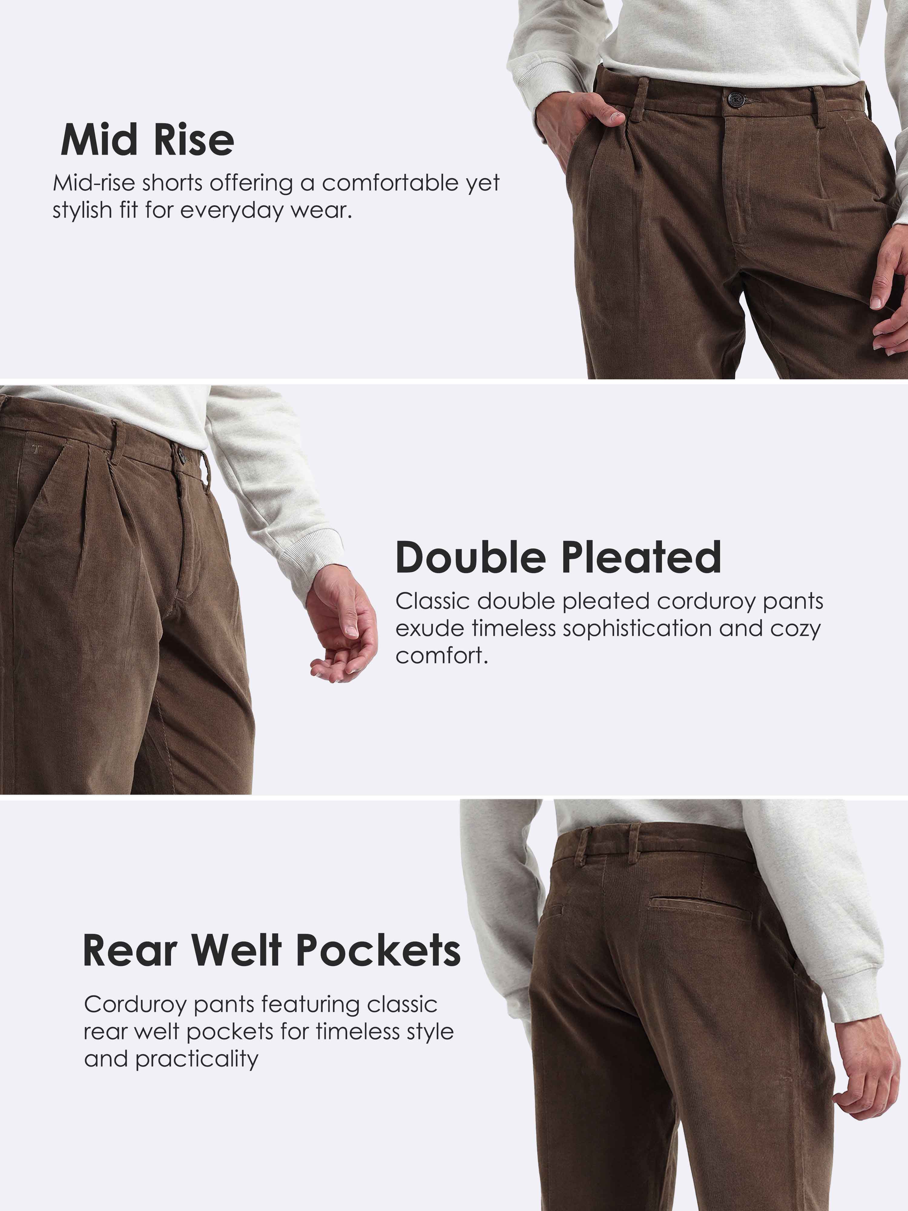 Relaxed Fit Double Pleated Trousers With a Classic Waistband in a Soft Corduroy Elastane Fabric Featuring Front Pockets, Rear Welt Pockets and Zip Fly.