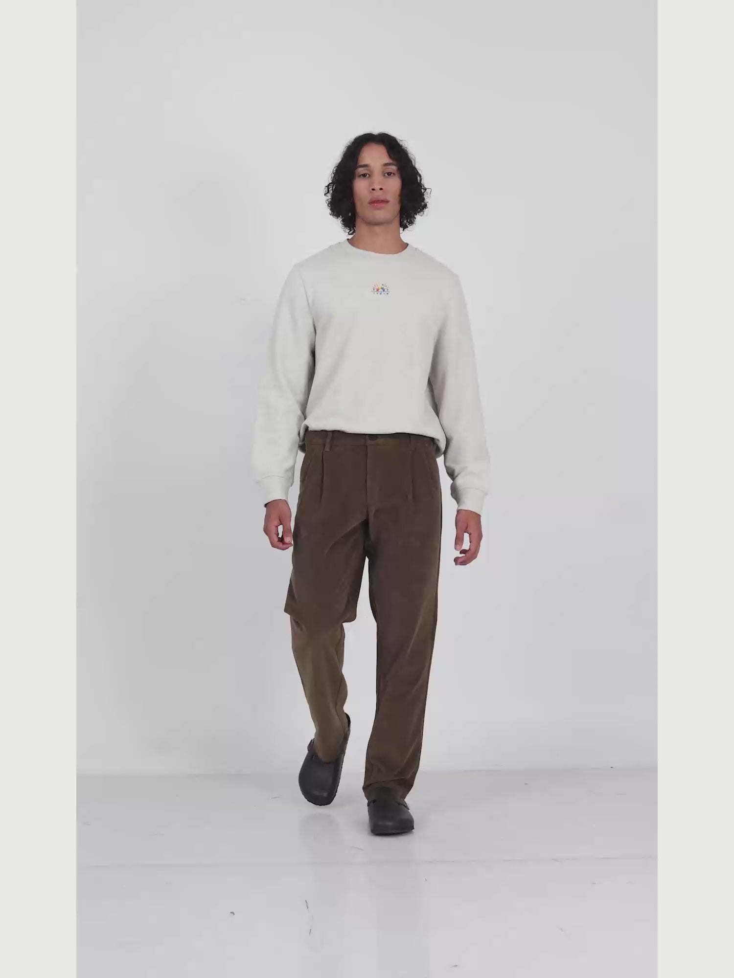 Soft Corduroy Oak Olive Relaxed Pleated Pant